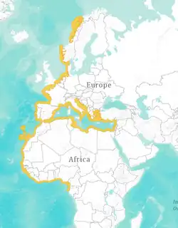 1. ^ Pollard, D. (2010). "Acantholabrus palloni". IUCN Red List of Threatened Species. 2010: e.T186106A8501267. doi:10.2305/IUCN.UK.2010-4.RLTS.T186106A8501267.en. Retrieved 19 November 2021.