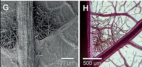Acarodomatia (singular Acarodomatium) (Latin: Acari - mites, domus - dwelling), are tussocks of hairs or nonglandular trichomes located in pits situated in major leaf vein axes of many plant species, occupied and caused by predatory and mycophagous mites.[1]