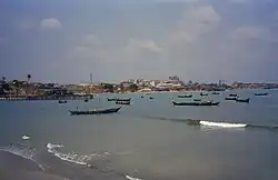 Initially, Accra was not the most prominent trading centre; the trading hubs were the ports at Ada and Prampram, along with the inland centres of Dodowa and Akuse.[20] An early Portuguese fort was destroyed by the local inhabitants in 1576; trader afterwards was conducted on the beaches.[21] The Dutch later built the nearby Fort Crèvecœur while the British and the Swedes built James Fort and Christiansborg castles, respectively, in the mid-17th century.[22]