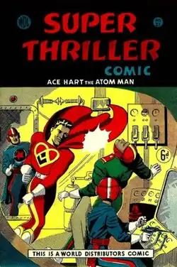 Ace Hart, billed as "the Atom Man", first appeared in the sixth issue of Foldes' Super Thriller Comic anthology comic. After ten issues the title and characters - including Ace Hart - were sold to World Distributors,[2] which continued the title until #33, when it was retitled Western Super Thriller Comics in 1952, refocusing on western-themed strips imported from Dell Publishing.