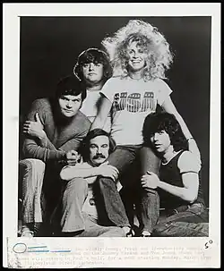 ![]() Ace Trucking Company with (top row, left to right) Fred Willard, George Memmoli, Patti Deutsch, (bottom row, left to right) Bill Saluga, and Michael Mislove, in a promotional photo from March 1972. | |
