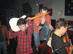 Ace and the Ragers were formed in 1993 in response to the growing number of local North Coast area punk and hardcore bands enjoying success without the benefit of major label representation or promotion. Inspired by bands like the Ramones, the Ragers stormed onto the scene by adopting a fast, noisy, and raw set of favorites from the 50s, played to a frenetic punk beat.[2] That first set list consisted of covers of Rock Around the Clock, Blue Suede Shoes, At The Hop, Teenager in Love and Splish Splash, all played several times each, about 2 hours after the band was actually formed, and without the benefit of ever having actually played together (or having ever played their specific instruments) before the first note of the first show. The original Rager lineup was Todd Nelson on drums, Jason Borkowski (Ace) on guitar and vocals, and Bryan McCleery on bass.