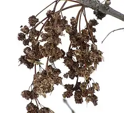 Aceria fraxiniflora, the ash flower gall mite, is a species of gall mite that produces galls on ash trees.[1] The male flowers of ash are greatly distorted by the mites, which results in a highly disfigured and disorganized gall that remains yellow or green, and later dries and turns brown. However, there is little evidence that this injury has a substantial impact on the ash plant's health.[2]