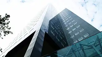 Achmeatoren (Dutch for Achmea Tower) is an office building in Leeuwarden, Friesland, the Netherlands. The Achmeatoren was opened in 2002.[2] and is 115 meters (377 ft) tall, having 26 floors. It is the 23rd tallest building in the Netherlands, and the tallest in the northern part of the country—visible from a large part of Friesland in clear weather. The building was commissioned by Achmea and designed by renowned Dutch architects Abe Bonnema and Jan van der Leij from Bonnema Architects in Hardegarijp.[3] Since its completion the building has lost its granite plates three times but no one has ever been injured.[4]