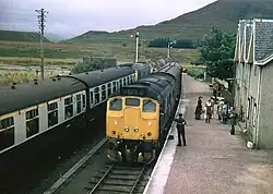 Achnasheen railway station is a remote railway station on the Kyle of Lochalsh Line, serving the village of Achnasheen in the north of Scotland. The station is 27 miles 72 chains (44.9 km) from Dingwall, between Achanalt and Achnashellach.[4] ScotRail, who manage the station, operate all services.