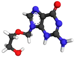 - ^ Elion GB, Furman PA, Fyfe JA, de Miranda P, Beauchamp L, Schaeffer HJ (December 1977). "Selectivity of action of an antiherpetic agent, 9-(2-hydroxyethoxymethyl) guanine". Proceedings of the National Academy of Sciences of the United States of America. 74 (12): 5716–5720. Bibcode:1977PNAS...74.5716E. doi:10.1073/pnas.74.12.5716. PMC 431864. PMID 202961.