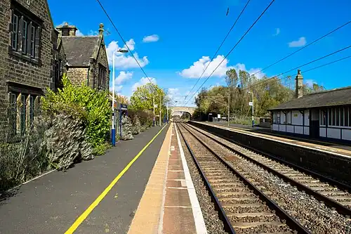 The station has a substantial main building on the northbound side, which is Grade-II listed and now used as a private residence.[2] It also had a goods yard and signal box. The station avoided the Beeching Axe in the late 1960s that claimed several others on the East Coast main line and until the late 1980s had through trains to Berwick-upon-Tweed and Edinburgh Waverley (though only 3-4 per day each way in total).[3] Electrification of the ECML and a rolling stock shortage led to the timetable being cut to the present residual level in 1991.