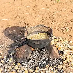 Acorns are a traditional food of many indigenous peoples of North America, and long served an especially important role for Californian Native Americans, where the ranges of several species of oaks overlap, increasing the reliability of the resource.[31] One ecology researcher of Yurok and Karuk heritage reports that "his traditional acorn preparation is a simple soup, cooked with hot stones directly in a basket," and says he enjoys acorns eaten with "grilled salmon, huckleberries or seaweed."[32]