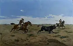 Acoso y derribo is traditional sport in the doma vaquera equestrian tradition of Spain, in which cattle are brought to the ground by two riders, the garrochista and the amparador, using the garrocha or lance.[1] The horses used are often of tres sangres (Andalusian x Arab x Thoroughbred)[2] or Hispano-Árabe stock.