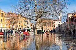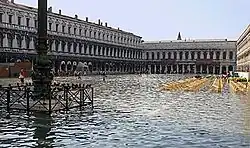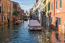 An acqua alta (/ˌækwə ˈæltə/,[1] Italian: [ˈakkwa ˈalta] ⓘ; lit. 'high water') is an exceptional tide peak that occurs periodically in the northern Adriatic Sea. The term is applied to such tides in the Italian region of Veneto. The peaks reach their maximum in the Venetian Lagoon, where they cause partial flooding of Venice and Chioggia; flooding also occurs elsewhere around the northern Adriatic, for instance at Grado and Trieste, but much less often and to a lesser degree.