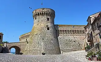 - Fortress of Acquaviva (13th-14th century). A large medieval fortress, among the biggest and better preserved in the Marche region, restored in the 15th century by Baccio Pontelli