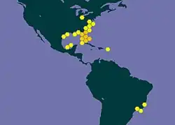 This marine species occurs in the Western Atlantic Ocean off North Carolina; in the Caribbean Sea off Cuba.