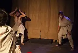 Improvisation as an approach to acting formed an important part of the Russian theatre practitioner Konstantin Stanislavski's 'system' of actor training, which he developed from the 1910s onwards. Late in 1910, the playwright Maxim Gorky invited Stanislavski to join him in Capri, where they discussed training and Stanislavski's emerging "grammar" of acting.[7] Inspired by a popular theatre performance in Naples that utilised the techniques of the commedia dell'arte, Gorky suggested that they form a company, modelled on the medieval strolling players, in which a playwright and group of young actors would devise new plays together by means of improvisation.[8] Stanislavski would develop this use of improvisation in his work with his First Studio of the Moscow Art Theatre.[9] Stanislavski's use was extended further in the approaches to acting developed by his students, Michael Chekhov and Maria Knebel.