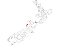 - ^ de Lange, P.J.; Rolfe, J.R.; Barkla, J.W.; Courtney, S.P.; Champion, P.D.; Perrie, L.R.; Beadel, S.M.; Ford, K.A.; Breitwieser, I.; Schönberger, I.; Hindmarsh-Walls, R.; Heenan, P.B.; Ladley, K. (1 May 2018). "Conservation status of New Zealand indigenous vascular plants, 2017" (PDF). New Zealand Threat Classification Series. 22: 54. OCLC 1041649797.