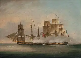 Didon's commander, Captain Captain Pierre Milius, decided to await the arrival of the British ship, and take her as a prize.[7]