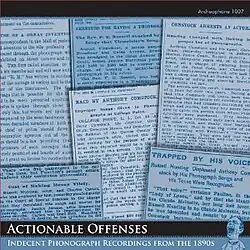 Actionable Offenses: Indecent Phonograph Recordings from the 1890s is a compilation of jokes and stories recorded to wax cylinders during the 1890s. At the time the recordings were made, they were considered indecent, and nearly all similar recordings from this era have been destroyed, often by law. The compilation was assembled by Patrick Feaster and David Giovannoni, and released on Archeophone Records, an archival reissue label, in 2007. It received two Grammy Award nominations.
