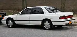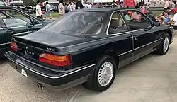 In late 1988 for the 1989 model year, the sedan received some minor tweaks, upgrading to the one-piece front headlamps already in use in Japan since the 1985 introduction, a revised front bumper, trunk lid, tail light cluster, and an upgraded double-wishbone rear suspension, with a new alloy wheel appearance. By that time all Legends came equipped with a Honda-designed 4-wheel anti-lock brake system. A driver's side airbag was now standard on all Legends.[5] Other features such as power driver's seat memory for 3 positions were added. High-end LS models featured a trip computer, electronic vehicle monitoring system in the center console and a Bose sound system. It was also joined by the Acura Vigor which set the stage for the larger second generation Legend introduced October 1990.[6]