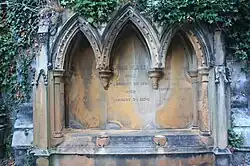 He retired from business in 1865, and lived his final years at 38 Drummond Place in the New Town.[6] He died on 24 January 1874. He was succeeded by his sons, who removed their business in 1895 to London. In 1877 a bronze statue by John Hutchison of Adam Black was erected in East Princes Street Gardens, Edinburgh.[3] He is buried in Warriston Cemetery on the outer face of the catacombs close to James Young Simpson.