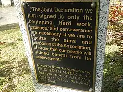 Bust of Adam Malik at the ASEAN Garden with the excerpt from his statement at the inauguration of ASEAN.