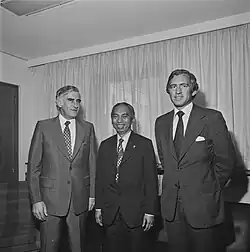 Malik with Australian political figures Billy Snedden and Andrew Peacock on 13 November 1973