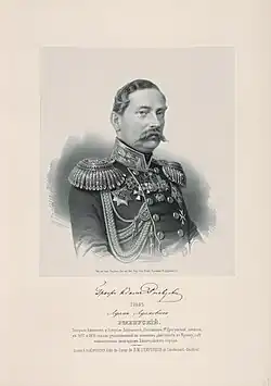 Adam Rzewuski (Russian: Адам Адамович Ржевуский, tr. Adam Adamovich Rzhevuskiy; 1801 – April 17, 1888) was a Polish-Russian general. He was born in Pohrebyshche in the Kiev Governorate of the Russian Empire (present-day Ukraine). He participated in wars in Poland and the Crimea. He died in Kiev.