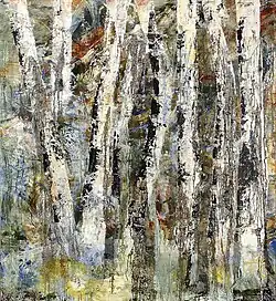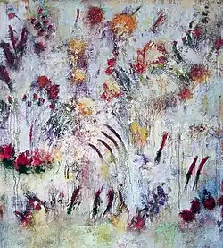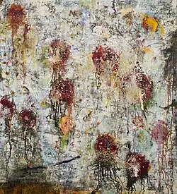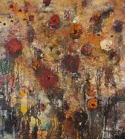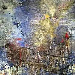His work combines abstract tradition with a sensibility to the present moment that is the result of an affinity for Eastern spiritual teachings. His paintings have lush surfaces built up over the course of 3 to 5 years or more, and a luminous tension that evokes a deep emotional response in the viewer.[3]