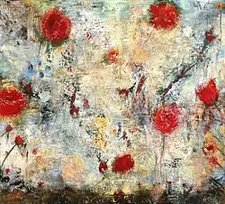 His work expands the tradition of abstraction by reliance on classical painterly techniques and a view towards the referential. He has explored numerous directions loosely referred to as landscape, flowers, trees, and work using language as an element.