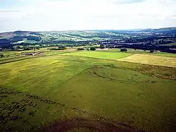 The first evidence of settlements come from the Iron Age – evidence of major tree clearance dating back to 700 BC has been found, as well as quern-stones on Addingham Moorside, which were shaped like small straw beehives and have hence been named 'beehive querns'.[6] While a settlement on the Moorside has never been found, remains of an Iron Age settlement have been found on Addingham Low Moor, today known as Round Dikes.[7] It has been suggested that Round Dikes, along with similar nearby sites Woofa Bank and Nesfield Scar, were summer encampments of the Romans.[8] Little evidence truly remains of the 350 years of Roman occupation, save for the Roman road towards Skipton (now Moor Lane) which, up until the 1800s, was still the primary route between the two settlements.[6]