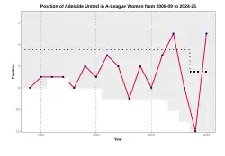 | 2020–21 | W-League | 5th of 9 | – | Chelsie Dawber (5) | Adrian Stenta |