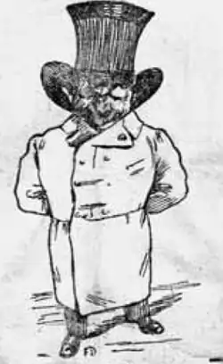Under Beldiman, the newspaper took pride in stating its independence, by taking distance from the two dominant parties, the Conservatives and the National Liberal Party, who either supported or tolerated King Carol.[4] This stance reputedly earned the publication an unusual status: anecdotes have it that Conservative leader Lascăr Catargiu would only read Adevărul while in the opposition, and that its columnist Albert Honigman was the first and for long time only journalist allowed into the upper class society at Casa Capșa restaurant.[14] In February 1889, the Conservative Premier Theodor Rosetti reputedly tried to silence Adevărul by having its distributors arrested.[10] In 1892, Adevărul became the first local newspaper to feature a cartoonist section, which hosted caricatures of the period's potentates, and its rebelliousness allegedly frightened the Romanian zincographers to the point where the plates had to be created abroad.[6] In April 1893, the Catargiu cabinet organized a clampdown on the newspaper: it arrested its editor Eduard Dioghenide (who was sentenced to a year in prison on charges of sedition) and, profiting from the non-emancipated status of Romanian Jews, it expelled its Jewish contributors I. Hussar and Carol Schulder.[10] Another incident occurred during May of the following year, when the paper's headquarters were attacked by rioting University of Bucharest students, who were reportedly outraged by an article critical of their behavior, but also believed to have been instigated by the Conservative executive's Gendarmerie.[10]