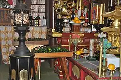 Honzon simply refers to the main deity in any given ritual. Kaji refers to the enhancement of a sentient being's power through the Buddha's power (Nyorai-kaji-riki), and it translates the Sanskrit word adhisthana.[9]