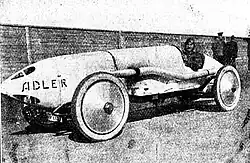 The Adler factory produced bicycles (from 1880), typewriters, sewing machines motorcycles, aircraft and calculators in addition to cars. Before World War I, the company used De Dion two- and four-cylinder engines in cars that ranged from 1032 cc to 9081 cc; beginning in 1902 (the year Edmund Rumpler became technical director),[1] they used their own engines as well. These cars, driven by Erwin Kleyer and Otto Kleyer (sons of the company founder Heinrich Kleyer) and by Alfred Theves won many sporting events. In the 1920s, Karl Irion raced many Adlers; popular models of the period included the 2298 cc, 1550 cc, and 4700 cc four-cylinders and the 2580 cc six-cylinders. A few of the Standard models, built between 1927 and 1934, featured Gropius-designed coachwork. The Adler Standard 6, which entered volume production in 1927, had a 2540 cc or 2916 cc six-cylinder engine, while the Adler Standard 8 which appeared a year later use a 3887 cc eight-cylinder engine. The Standard 6, first seen in public at the Berlin Motor Show in October 1926 was the first Continental European car to use Lockheed hydraulic brakes (the Triumph 13/35 offered them in the UK in 1924 and Duesenberg offered them in the US in 1920), when it was fitted with an ATE-Lockheed system. 1927 to 1929 Clärenore Stinnes was the first to circumnavigate the world by car, in an Adler Standard 6.[2]