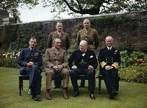 In October 1943, Cunningham became First Sea Lord and Chief of the Naval Staff, after the death of Sir Dudley Pound. This promotion meant that he had to relinquish his coveted post of Commander-in-Chief, Mediterranean, recommending Admiral John H. D. Cunningham as his successor.[59] In the position of First Sea Lord, and as a member of the Chiefs of Staff committee, Cunningham was responsible for the overall strategic direction of the navy for the remainder of the war. He attended the major conferences at Cairo, Tehran, Yalta and Potsdam,[57] at which the Allies discussed future strategy, including the invasion of Normandy and the deployment of a British fleet to the Pacific Ocean.[57]