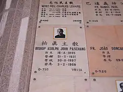 - ^ "Consecration of Bishop Paschang, Hong Kong, China, November 30, 1937". Archived from the original on 2012-03-25. Retrieved 2011-05-03.