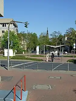 The Adorno traffic light (German: Adorno-Ampel) is a traffic light artefact in Frankfurt, which has become one of the city's landmarks. The traffic light is located on Senckenberganlage, a street which divides the Institute for Social Research from Goethe University Frankfurt. Local intellectual figure Theodor W. Adorno requested its construction after a pedestrian death in 1962, and it was finally installed posthumously 25 years later.[1][2]