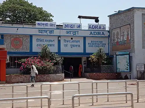 Adra Junction railway station serves Adra town, and also serves the industrial towns of Raghunathpur and Kashipur in Purulia district in the Indian state of West Bengal. It is a gateway to the famous tourist spots of Purulia district. It also servers as the divisional headquarters of the Adra Division of the South Eastern Railway zone of Indian Railways. Adra (ADRA) station is categorized as NSG 4 on the basis of yearly window sale. The station has also been declared as 'Model' as well as 'Adarsh' station. The station serves the Divisional Head Quarters.