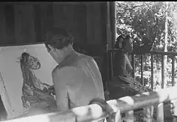 After three years working together, in 1935, Le Mayeur and Pollok got married. Le Mayeur kept on painting with his wife as his model during their married life. During the Japanese occupation of the Dutch East Indies in World War II Le Mayeur was put under house arrest by the Japanese authorities. He continued painting, however, often painting on rice sack cloth and other surfaces he could find. After the war Le Mayeur's reputation grew at steady pace.[4]