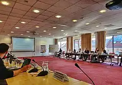 The Advisory Council on Youth comprises in total 30 young representatives designated by the Committee of Ministers for a two-year mandate,[26] including 13 young people of international non-governmental youth organisations (INGYOs) and seven representatives of National Youth Councils, on the proposal of the European Youth Forum, as well as ten members, representing non-governmental youth organisations or networks, which are not members of the European Youth Forum on the proposal of the Secretary General of the Council of Europe.[18][27] The 20 representatives on the proposal of the European Youth Forum gets democratically elected among its member organisations, usually at its spring Council of Members (COMEM) in Brussels.[28]
