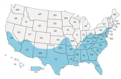 - ^ Eisen, L.; Moore, C. G. (2013). "Aedes (Stegomyia) aegypti in the Continental United States: A Vector at the Cool Margin of Its Geographic Range". Journal of Medical Entomology. 50 (3): 467–478. doi:10.1603/ME12245. PMID 23802440. S2CID 16922806.