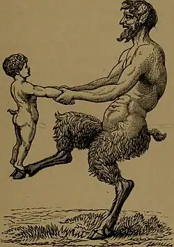Later writers such as Pliny the Elder used the terms "Aegipanes", "Aegipans", or "Oegipans" to describe a race of satyr-like wild men said to reside in Libya.[6] This depiction was continued in medieval bestiaries where the terms aegipans and satyrs were sometimes used to describe ape-like or bestial creatures. These are thought to be fanciful descriptions of baboons or monkeys. A reference to oegipans as a species also appears in Edgar Allan Poe's The Fall of the House of Usher and Arthur Machen's The Great God Pan.