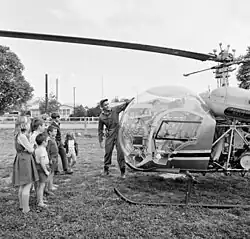 The phasmatid Didymuria violescens or stick insect is commonly found in the forests of south east Australia but when it reaches high numbers it can be very destructive of mountain ash and alpine ash. The insect reached plague proportions during 1952 in stands of alpine ash in the Bago State Forest in NSW and became a serious threat to valuable timber stands.[48] A Dakota DC3 aircraft was used to spray the insect pest but was found to be unsuitable because of the long runway required and difficulty flying cumbersome aircraft in mountainous terrain. The Forestry Commission of NSW undertook more research into insecticide applications and the de Havilland corporation provided a DHC2 Beaver aircraft for more trials in 1957. The CSIRO and the NSW Forestry Commission then evaluated the effectiveness of the application and later in 1960 began using a Bristol 171 Sycamore helicopter borrowed from Ansett-ANA.[1]