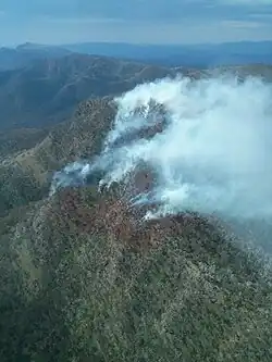 Moreover, much of eastern Victoria and alpine parts of NSW are remote, mountainous and inaccessible and bushfires are often caused by multiple lightning strikes which can grow quickly in size. Even with the aid of modern firebombing aircraft to slow the spread of a bushfire, the control of these fires usually remains reliant on ground crews getting to the fire edge to extinguish it completely.[4] Although, heavy rain is sometimes sufficient.