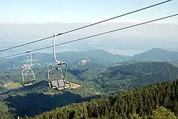 Chairlifts are continuously circulating systems carrying chairs, which usually enable skiers to board without removing skis. They are a common type of lift at most ski areas and in mountainous areas. They can also be found at some amusement parks and tourist attractions.[8]