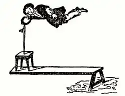 The aerial suspension, ethereal suspension or broomstick illusion is an illusion in which the performer appears to be suspended in mid-air for some minutes, with either inadequate support or no apparent support of the performer's weight. This trick was first recorded in India and Europe in the early 19th century.[1][2]