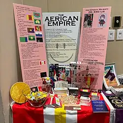 Delegations from the Aerican Empire were in attendance at the Polinations academic conference in London in 2012[22][23] and the MicroCon micronations convention in Atlanta in 2017.[2] Aerica was also represented at MicroCon 2023 in Joliet, Illinois.[24]