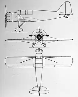 Mixed construction low-wing monoplane, braced with wire. Fuselage of a steel frame, covered with wood and canvas, elliptical in cross-section. Rectangular wings of wooden construction, canvas covered, fitted with all-span slats and with flaps. Wings were folding rearwards. Cab had two seats side by side in front, with twin controls, and two seats in the rear, under a common multi-part canopy. Fixed landing gear with a rear skid. Radial engine in fuselage nose, with NACA cowling. Two-blade propeller.