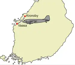 Aero Flight 311, often referred to as the Kvevlax air disaster, was a scheduled domestic passenger flight operated by Aero O/Y (now Finnair) between Kronoby and Vaasa in Finland. The aircraft, a Douglas DC-3, crashed in the municipality Kvevlax (Finnish: Koivulahti), nowadays part of Korsholm (Finnish: Mustasaari) on 3 January 1961, killing all twenty-five people on board. The disaster remains the deadliest aviation accident in Finnish history. The investigation revealed that both pilots were intoxicated and should not have been flying.[1]