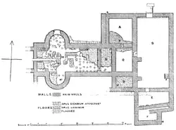 It is believed that the fort was completed in the year 128 AD, later than most of the wall forts as it was an afterthought to the original plan in which Milecastle 43 was built where the later north-west corner of the fort was constructed, and had to be demolished.[8] The fort was rectangular in plan with towers at each corner and measuring 355 feet (108 m) north to south by 419 feet (128 m) east to west, occupying a comparatively small area of 3 acres (12,000 m2). The fort had three main gates; south, east and west, with double portals with towers. At some time the west gate was completely blocked up.