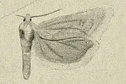 The wingspan is 19–20 millimetres (0.75–0.79 in). Adults are on wing from April to July.