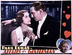 Affairs of a Gentleman is a 1934 American Pre-Code drama film directed by Edwin L. Marin and written by Cyril Hume, Peter Ruric and Milton Krims, adapted from the play by Edith Ellis and Edward Ellis (actor). The film stars Paul Lukas, Leila Hyams, Patricia Ellis, Phillip Reed, Onslow Stevens and Dorothy Burgess. The film was released on May 1, 1934, by Universal Pictures.[1][2][3]